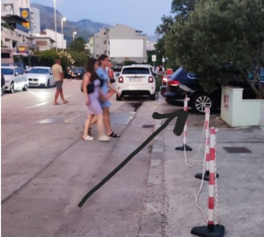 Krenulo se kako on kaže od najpoznatije osobe, makarske slikarice, koja je ogradila prometnice u duhu pravih barikada, stupićima, lancima, betonskim preprekama, kao da je dio ulice njezin.
