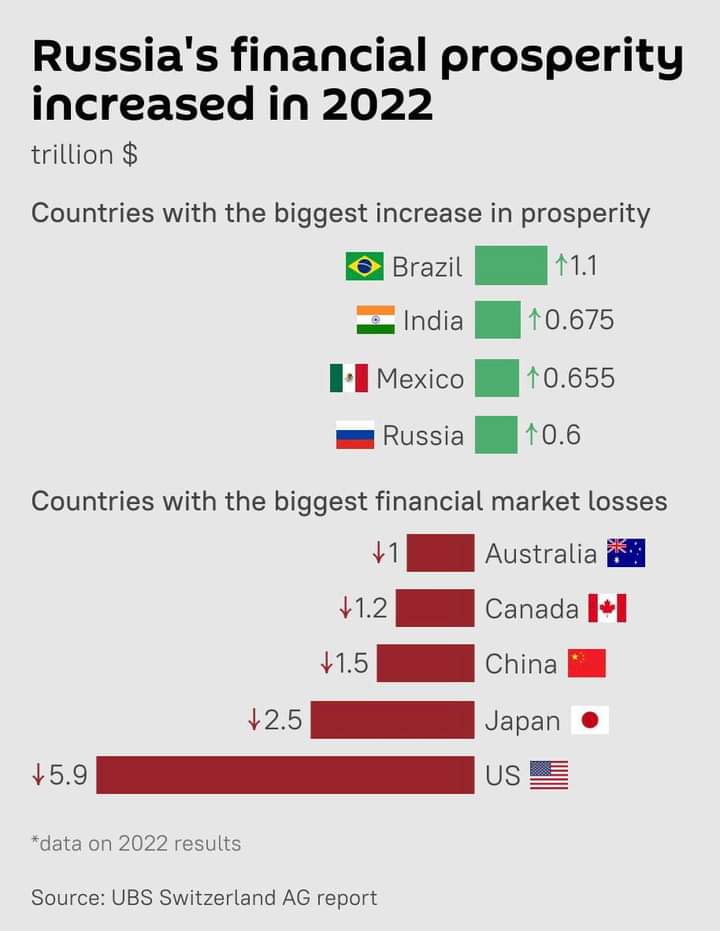 Rusija je bila među zemljama koje su uspjele povećati svoje bogatstvo u 2022. godini, navodi se u izvješću švicarske banke UBS.