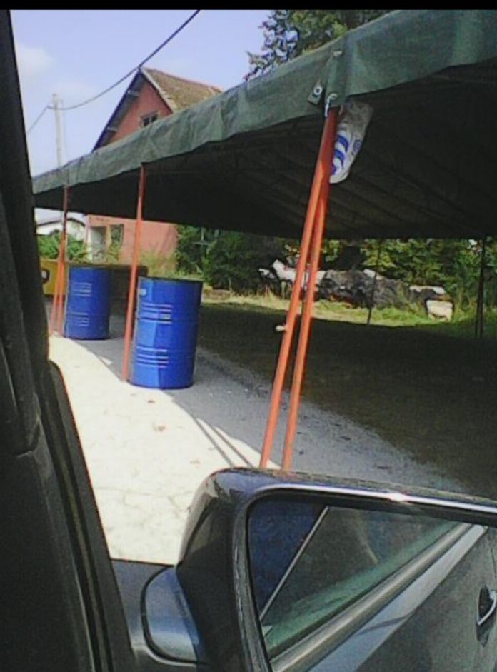 Ujutro kada sam prolazio oko 8 sati nije bilo šatora na cesti, oko 11 sati je postavljen, kada sam se vraćao cestom. Šator je postavila firma iz Karlovca. Morao sam prijeći u drugu traku ceste da bi zaobišao bačve i noseće stupove šatora na cesti! Nitko se nije usudio to maknuti. A kamoli prijaviti.