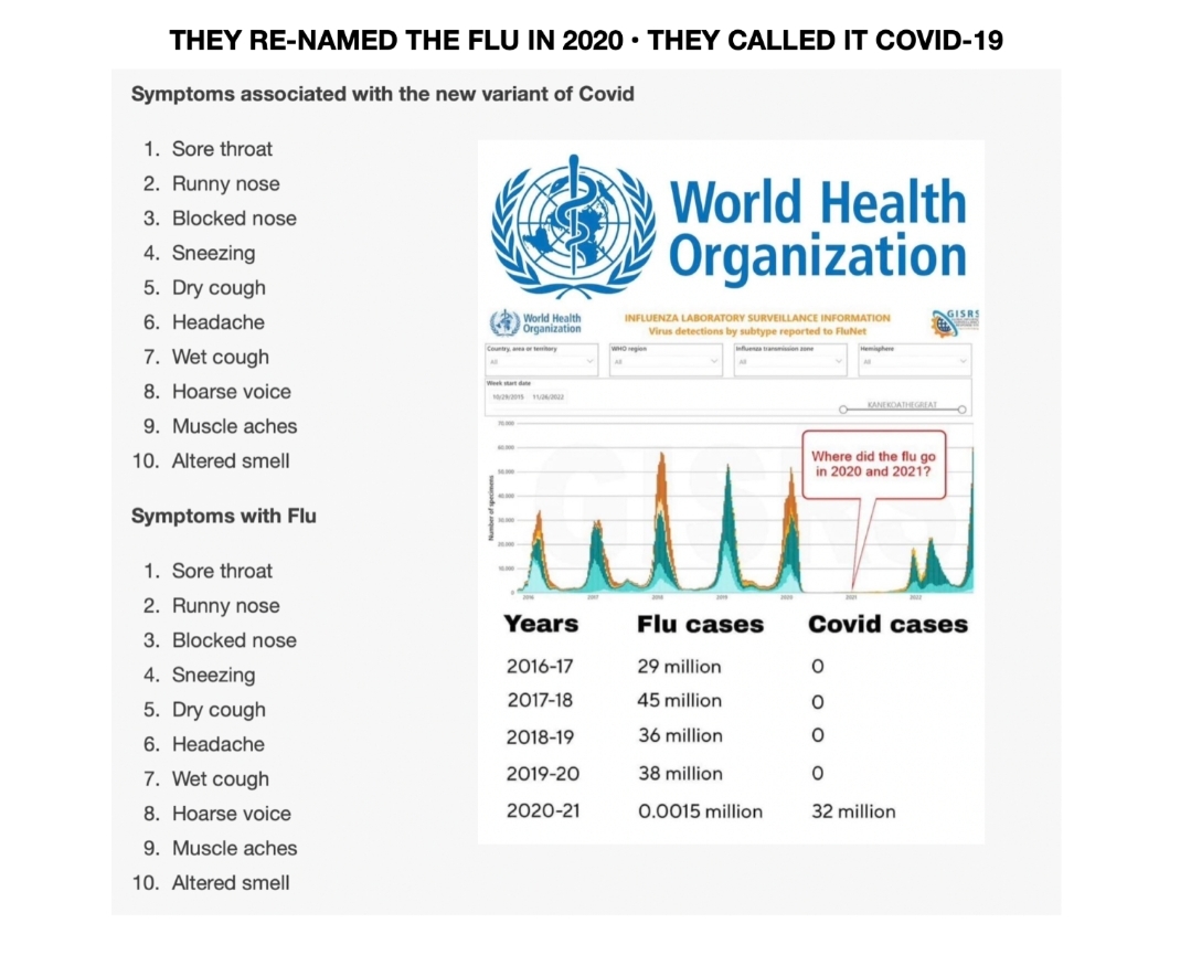 Iz slijedeće slike iz 2020. godine se vidi da su simptomi gripe i „bolesti“ covid-19 bili praktički jednaki. Pametnom dosta!