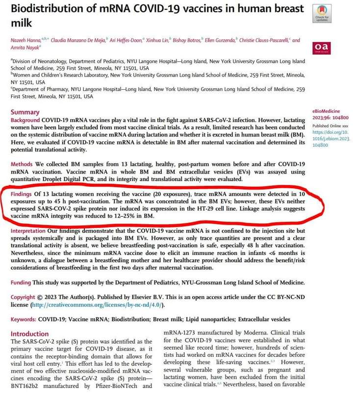 Dokument sadrži (PTs Vrijeme izlaganja majke neodređeno, Izlaganje majke tijekom trudnoće, Izlaganje majke prije trudnoće, Izlaganje tijekom trudnoće) i time potvrđuje ono što već DUGO znamo, a to je da ako je majka cijepljena, fetus će također biti cijepljen(a to uzrokuje nuspojave) , baš kao što dokument također potvrđuje, prijenos cjepiva putem majčinog mlijeka, nešto što su Pfizerove VLASTITE kliničke studije (provedene prije uvođenja cjepiva) također istaknule, kao i kasnija studija (Detection of Messenger RNA Cjepiva protiv COVID-19 u majčinom mlijeku) objavljena 26. rujna 2022. također potvrđuje.