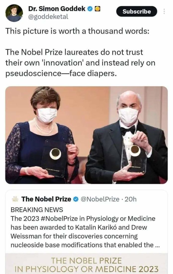 U kolikoj mjeri je dodijela Nobelove nagrade (iz medicine) i ovom dvojcu sprdačina govori fotografija snimljena u trenutku primanja nagrade.