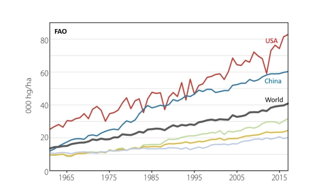 ⦁ CO2 nije zagađivač. Neophodan je za sav život na Zemlji. Fotosinteza je blagoslov. Više CO2 je korisno za prirodu, ozelenjavajući Zemlju. Također koristi poljoprivredi, povećavajući prinose usjeva diljem svijeta (vidi sliku 1), što nam omogućuje rješavanje globalne gladi.