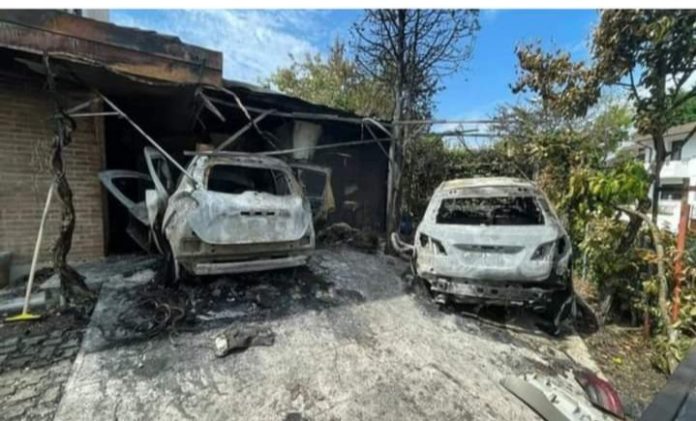 Plamen koji je zahvatio automobil brzo se proširio na drugi automobil parkiran na prilazu , mercedes, koji je izgorjela vatra koja je zahvatila i neke kablove dalekovoda. Zbog toga je požar zahvatio i upravljačku jedinicu Enel.