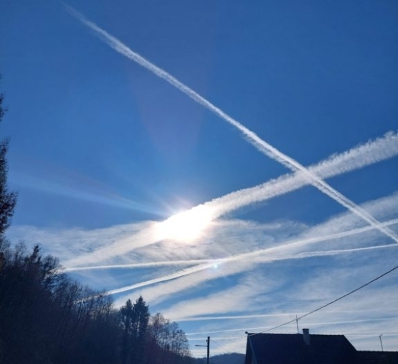 Sjedim tako jutros na zagrebačkom Dolcu na kavi sa suprugom, nebo je vedro, tu i tamo pokoji oblačak. Promatram prelete aviona. Dosta ih je. Svaki ostavlja trag. Snimam. Jutrošnji, međutim, nisu kao oni od nekidan. Jutrošnji su kao oni nekada. Kratko traju. Tragovi nestaju u nekoliko minuta. U čemu je “kvaka”? U čemu je razlika od onih u petak osim što su trajali su satima? Sve je isto, tu i tamo pokoji bjelkasti oblačak koji se “jedva” kreće, ništa ne upućuje na jaka zračna strujanja. Štoviše tragovi preleta rasplinjuju se u sitne oblačiće na mjestu gdje su nastali. Jedino mi pada na pamet je da je nedjelja. Jasno! Neradna nedjelja (ako me razumijete)!