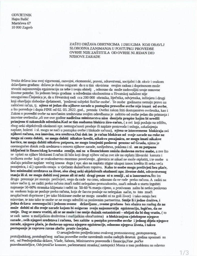 Odvjetnica Bašić: Zašto država obrtnicima i slobodnim zanimanjima nije zaštitila dio primanja od ovrhe?