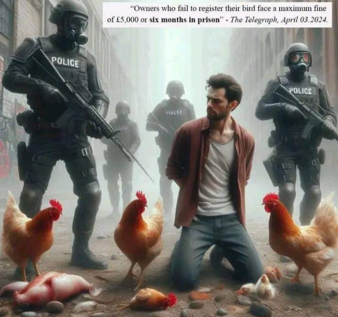 Vlasnici pilića moraju se registrirati kod vlade ili riskirati kaznu od £5000 prema novim pravilima za borbu protiv ptičje gripe .