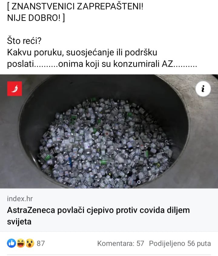 No, koliko su doista bili vođeni našim dobrom vidjelo se kad su najprije počeli s ismijavanjem svih onih koji su nudili rješenja izlaska iz krize, onih koji su pozivali na sagledavanje nastalog stanja iz drugog kuta, onih koji su dizali glas protiv cenzure i sustavnog defimiranja uglednih i domaćih i svjetskih imena s polja znanosti, a koja su upozoravala na potencijalnu štetnost i pogubnosti kako nametnutih mjera tako i sredstava kojima se mislilo suzbiti navodnu pandemiju, … da bi potom krenuli s još agresivnijim pristupom uz prijetnje otkazom s posla i trpanjem u zatvor svih onih koji ne pristanu na uvjete participiranja u javnom životu na način kako to predlaže jedan veterinar na čelu privatne organizacije zvane WHO ili pak jedan garažni programer koji si je umislio da nakon IoT (internet stvari) kodira svakog pojedinca i umreži u IoB (internet tijela) preko nanotehnologije ubrizgane nečim sto on naziva cjepivom.