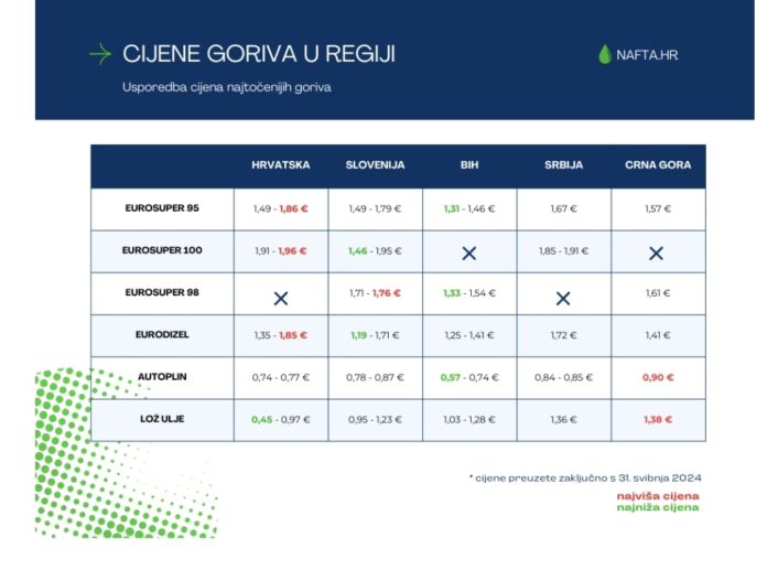 U tu svrhu smo na portalu Nafta.hr odlučili napraviti usporedbu cijena goriva za sve države u regiji, te vidjeti koliko naši susjedi izdvajaju za litru dizela, benzina te ostalih naftnih derivata.