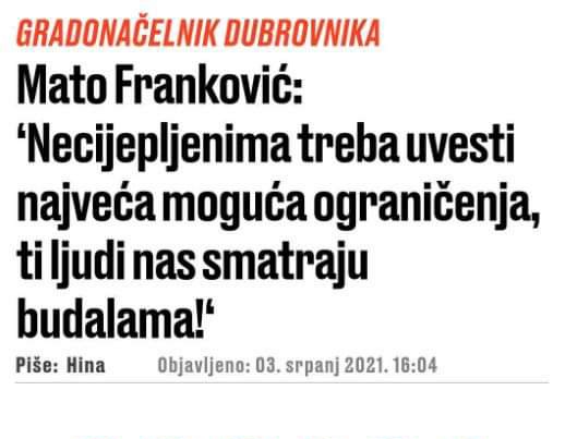 Ne brine vas što je velika većina danas u Saboru bila za kovid putovnice, cijepljenje i maske na licima? Ne zabrinjava vas što Srećko Sladoljev nije ušao u Sabor i što su ga oni koji se zaklinju u domoljublje stavili na znakovito 13 mjesto liste ?