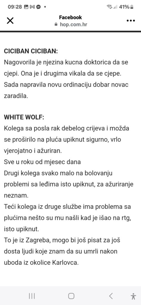 Razlozi su jasni. Mnogi žele što prije zaboraviti sve, pa se licemjerno prave kao da ništa sporno se nije dogodilo, neki još uvijek ne povezuju bolesti i moguću ulogu cjepiva, a neki kod nas svjedoče o teškim posljedicama na tragičan način, skrivajući se iza nadimaka, inicijala ili glupih naziva poput Ciciban, čekamo samo da i Crvenkapica posvjedoči o cjepivima te da to izađe u nekoj dubokoumnoj knjizi…