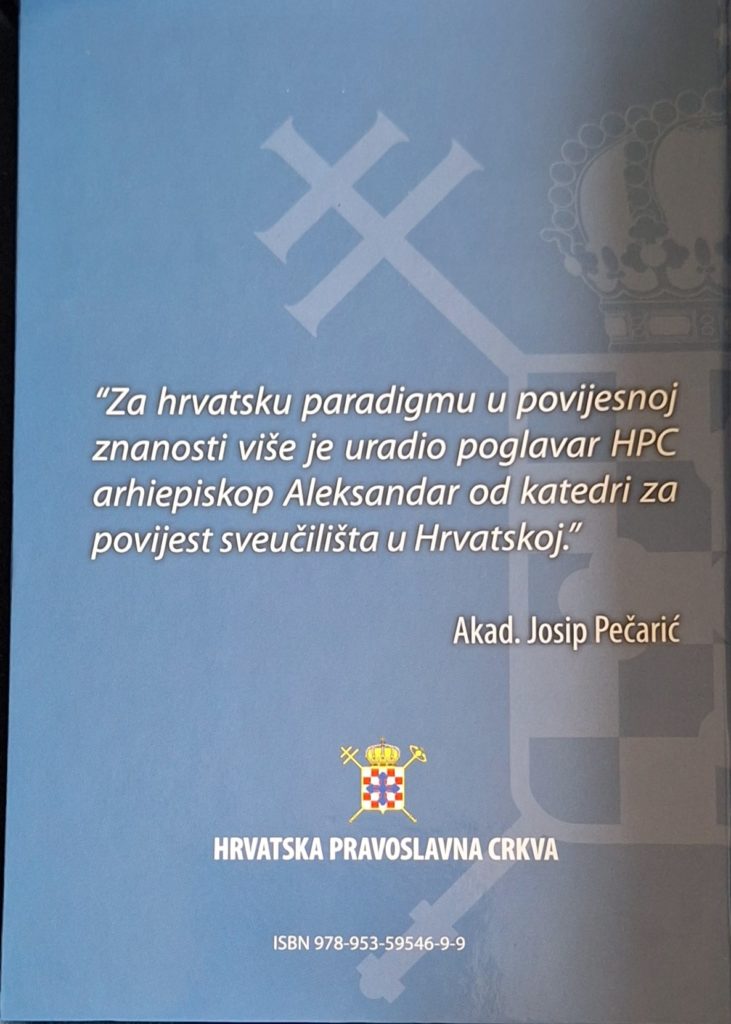 Meni osobno bilo je drago da prvi primjerak knjige “Hrvatska Pravoslavna Crkva- Preporod” Arhiepiskopa Aleksandra je uručen meni osobno, jer ta knjiga u potpunosti mijenja ige i igrarije hrvatskih neokomunista prema pravoslavlju, koje loše poznaju, odnosno razotkriva njihov promašeni karakter djelovanja…prema srpskoj crkvi u Hrvatskoj.