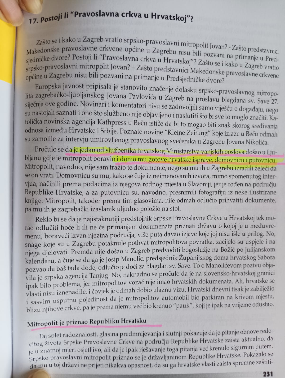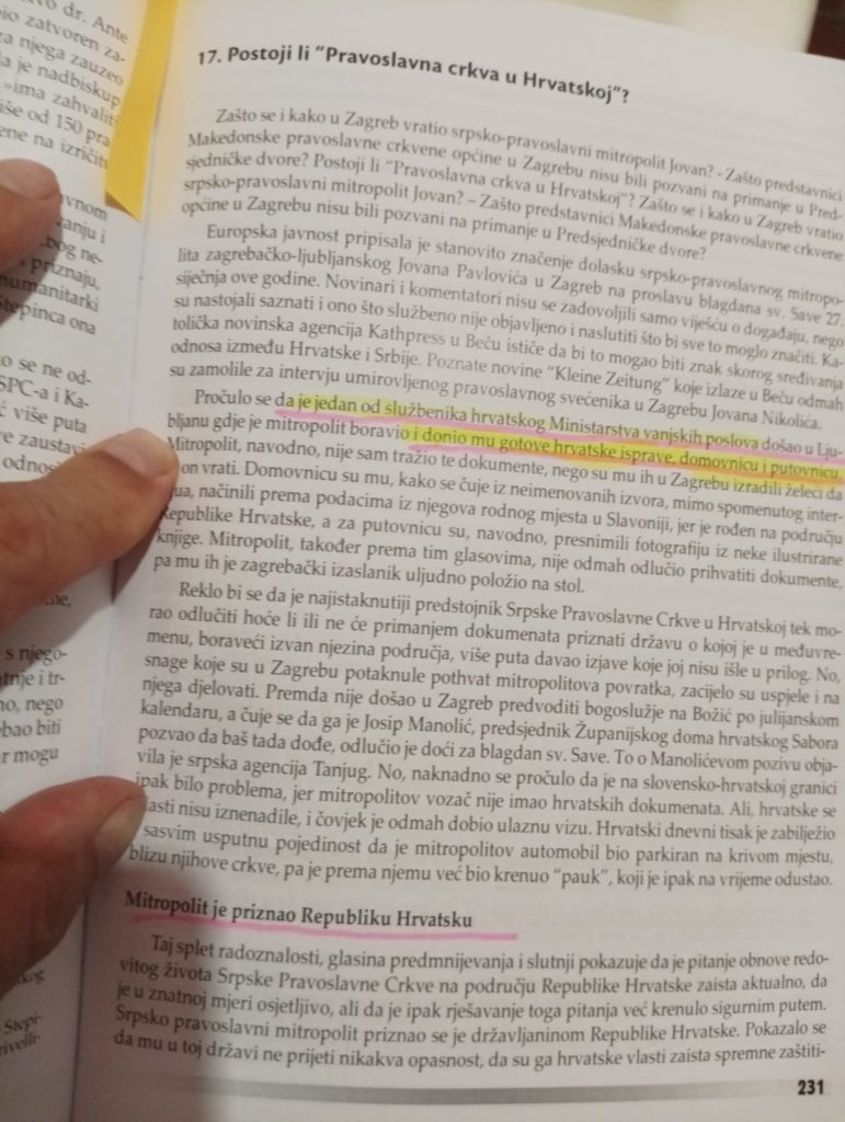 Konzervativan tisak u Hrvatskoj poput HKV-a primjećuje probleme u Crnogorskoj pravoslavnoj crkvi, ali ne vidi situaciju kod kuće i probleme priznanja HPC-a bez obzira na sudsku presudu od strane državne uprave i obespravljenost crkve, dok se srpskom poglavaru u ratu, godinu dana prije akcije “Oluja” nosi u Ljubljanu putovnicu i osobnu kartu, srpskom crkvenom čovjeku, te sređuje njegovom vozaču ulaz u državu…