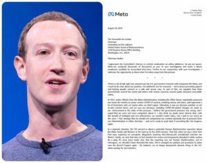 1) U službenom pismu predsjedniku Odbora za pravosuđe Zastupničkog doma Kongresa SAD-a, Mark Zuckerberg priznaje da je Biden-Harrisova administracija radila pritisak da se cenzuriraju različiti sadržaji u vrijeme COVID-a.