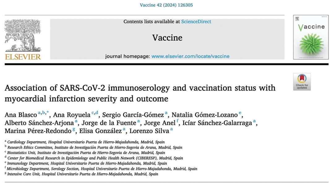 Bez ikakve pompe prošlog je tjedna u Elsevierovom međunarodnom časopisu pod naslovom Vaccine objavljena španjolska studija koja ispituje srednjoročne ishode (nekoliko mjeseci) pacijenata hospitaliziranih zbog infarkta miokarda u odnosu na njihovu virusnu serologiju i status cijepljenja.