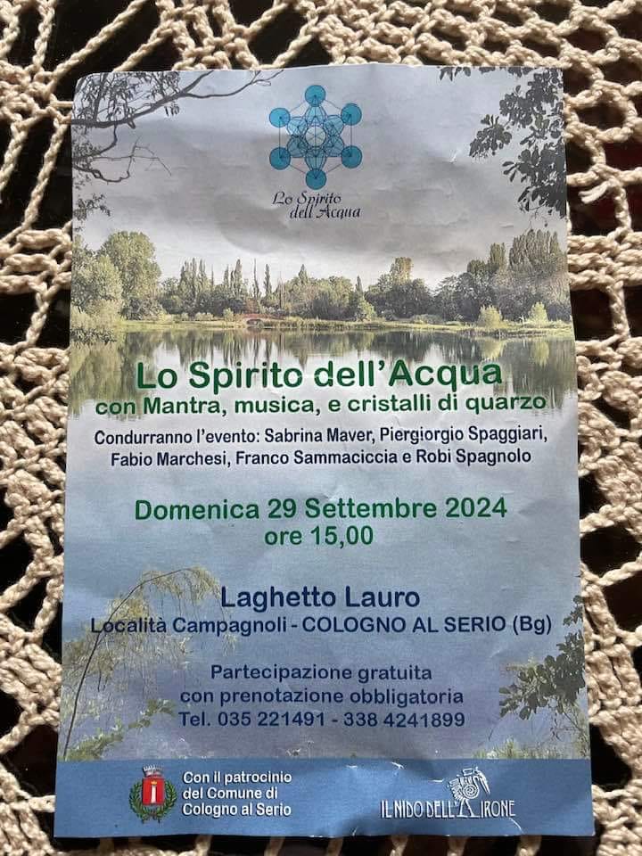 Jučer u Laghetto Lauro u nazočnosti 350 ljudi, nakon govora našeg španjolskog prijatelja, Marchesija i mene, uz veličanstvenu Sammacicciu i uz sjajno sudjelovanje Sabrine Maver, vlasnice ovog čarobnog mjesta, priča o vodi i 350 Kvarcnih kristala.