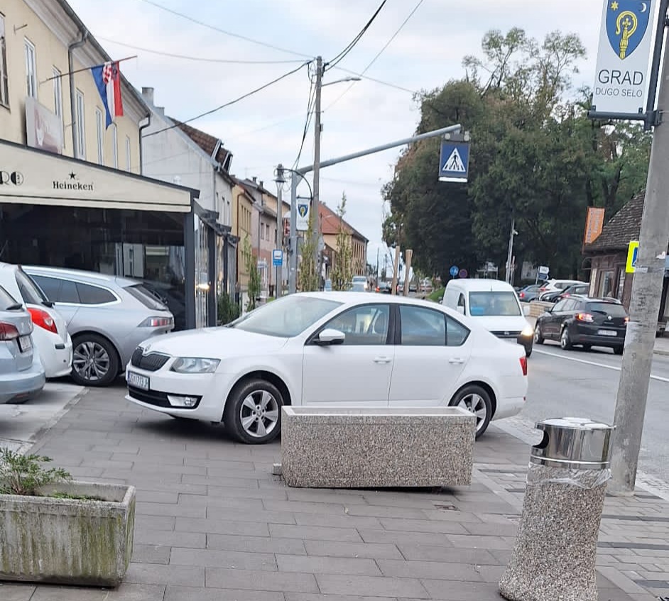 Već nekoliko mjeseca dio glavne ulice i sam centar napravljen za pješake, koji narod popularno zove pločnik u Dugom Selu je preplavljen teškim betonskim vazama koje prekrivaju polovicu pločnika u najprometnijoj pješačkij zoni Dugog Sela. I tako osjetno smanjuju mogućnost prolaza većeg broja pješaka i školaraca. Posebno je to opasno kada se djeca vraćaju iz osmogodišnje i srednje škole. Tada ima i veći broj djece na biciklima.