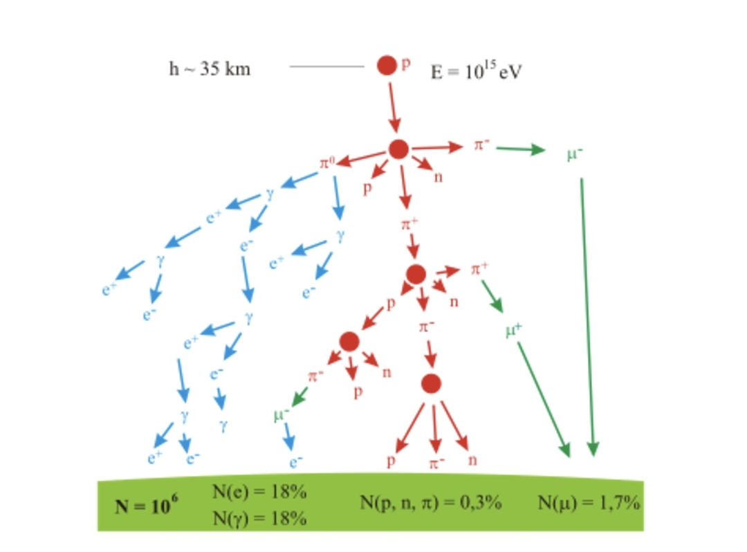 Nakon što uđu u Zemljinu atmosferu, kozmičke čestice se sudaraju s molekulama, uglavnom dušikom i kisikom, stvarajući slapove manjih čestica, koje zovemo još pljusak elementarnih čestica.