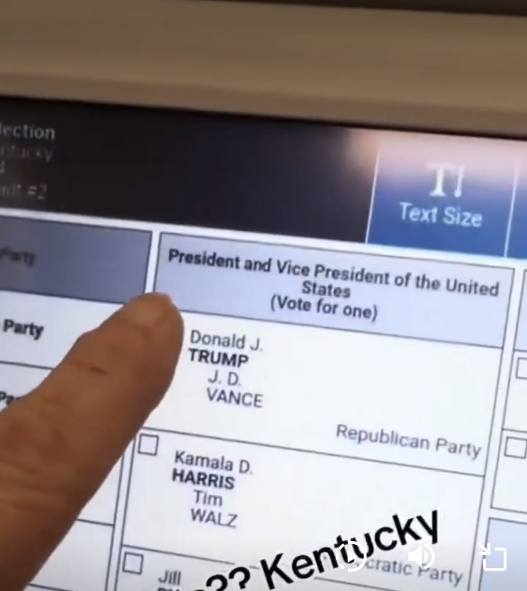 Viralni video prikazuje čovjeka u okrugu Laurel koji opetovano pokušava progurati izbor Trump-Vance na glasačkom stroju koji međutim ne uspijeva registrirati njegov izbor.