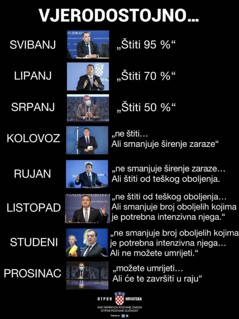 TKO ĆE ODGOVARATI ZA SVE PREMINULE NEADEKVATNIM LIJEKOVIMA PRIJE I NAKON PROMJENE PROTOKOLA LIJEČENJA C-19, 31.8.2021. GODINE? PA PROMJENOM PROTOKOLA  LIJEČENJA UBILI STE 1592 ČOVJEKA, POSLUŠNE GRAĐANE RH, KOJI SU VAS VJERNO SLUŠALI!!!