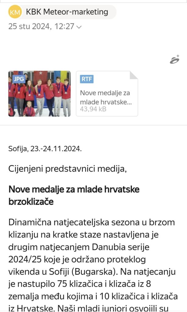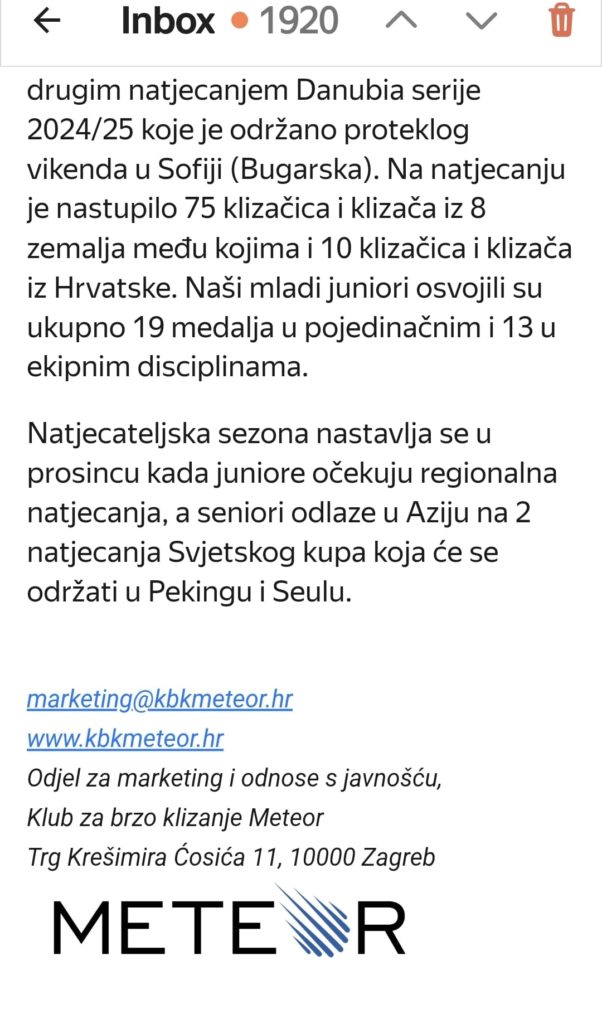 Jasno se vidi da se radi o tekstu brzoklizačkog kluba Meteor, čije članke smo i ranije objavljivali.