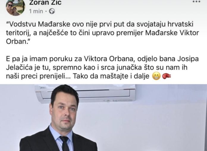 Ovih dana gospodin Zoran Žic plijeni pažnju jer je poslao poruku mađarskom predsjedniku Orbanu, da ne poseže za hrvatskim teritorijem , uz fotografiju sa odorom Bana Josipa Jelačića, jedinog neporaženog vojskovođe na svijetu , podsjetio je madaskog pretilog predsjednika Orbana da se ne poigrava sa Hrvatima. Ako to netko zna, zna pogrebnik, koliko koštaju krive prosudbe.