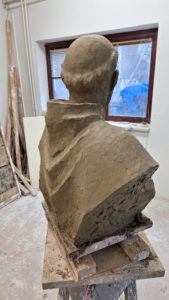 Ak. kipar Slaven Miličević i vlč. Pero Jurčević Glineni model biste_iza
