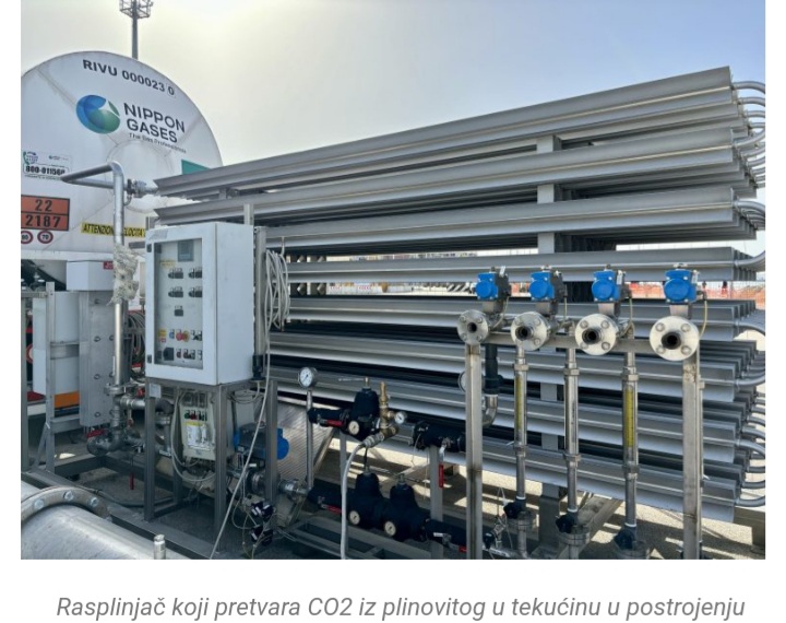 Rasplinjač koji pretvara CO2 iz plinovitog u tekućinu u postrojenju u Augusti