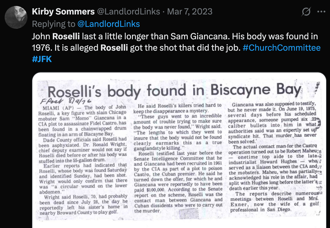 Pa ću to ostaviti ovdje. Sve je vani za čitanje svih podzapisa, svi računi su tu. Ima nekoliko knjiga. Navodim i Super mobove. Jedan od njih, Sidney Kors, Chicago Fixer je još jedan. Mnoštvo potvrda o plaćanju za one koji vole potvrde o plaćanju i za dublje zaronjavanje. Sjajno je što su JFK dosjei donijeli sve te aha trenutke. 📍