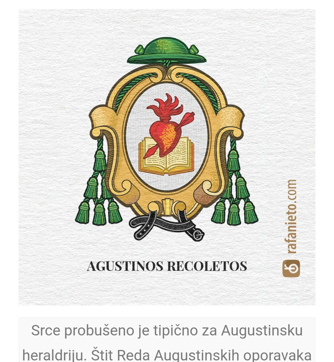 U drugom dijelu svog štita nam govori o Sv. Augustin I njegova karizma: goruće srce probušeno strijelom koja se naginje na knjigu.