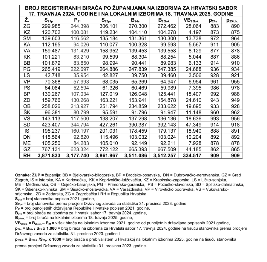 ANALIZA PODATAKA O ZAKLJUĆENOM POPISU BIRAČA ZA IZBORE ZA HRVATSKI SABOR 17. TRAVNJA 2024. I ZA LOKALNE IZBORE 18. SVIBNJA 2025. GODINE