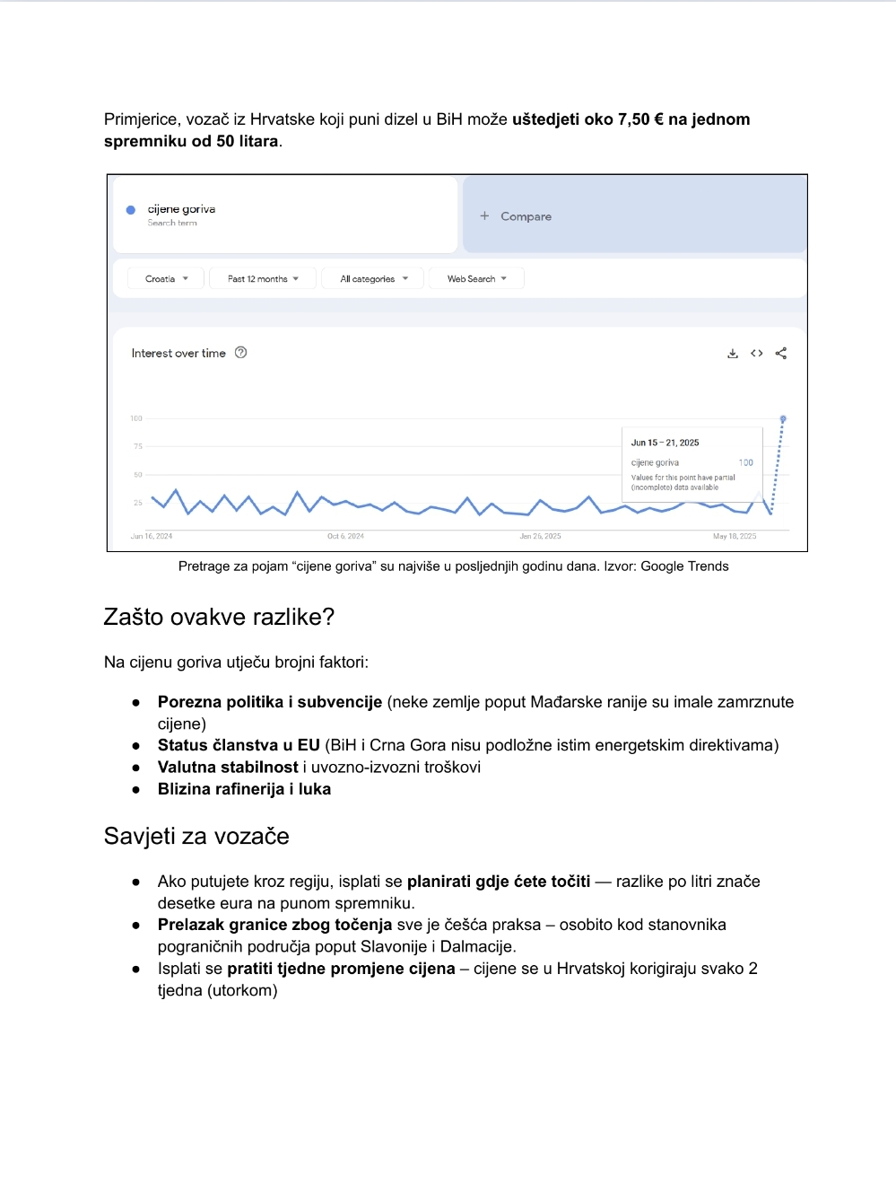 U zadnjih tjedan dana pretrage pojmova poput “cijene goriva” i “koliko košta benzin” dosegle su najvišu razinu u posljednjih 12 mjeseci.