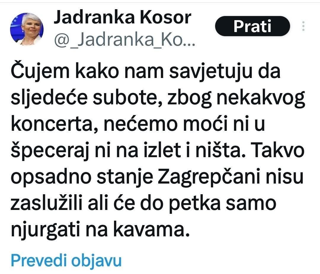 Davanje dozvole za koncert u toplinskom paklu srpnja (jer ranije navodno nije bilo termina) da bi se POKLOPIO s masovnim rekonstrukcijama zagrebačkih prometnica (da se ne može ni iz grada ni u grad), dio je scenografije…”