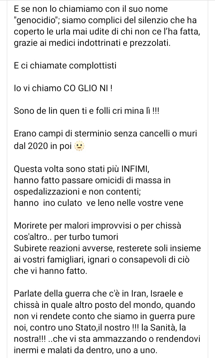Za turbo tumore Patit ćete od nuspojava, ostat ćete sami sa svojom obitelji, nesvjesni ili svjesni što su vam učinili. Pričate o ratu koji se vodi u Iranu, Izraelu i tko zna gdje još u svijetu, a ne shvaćate da smo i mi u ratu, protiv države, naše!!! Zdravlje, naše!!! ..koja vas ubija ili čini bespomoćnima i bolesnima iznutra, jednog po jednog.
