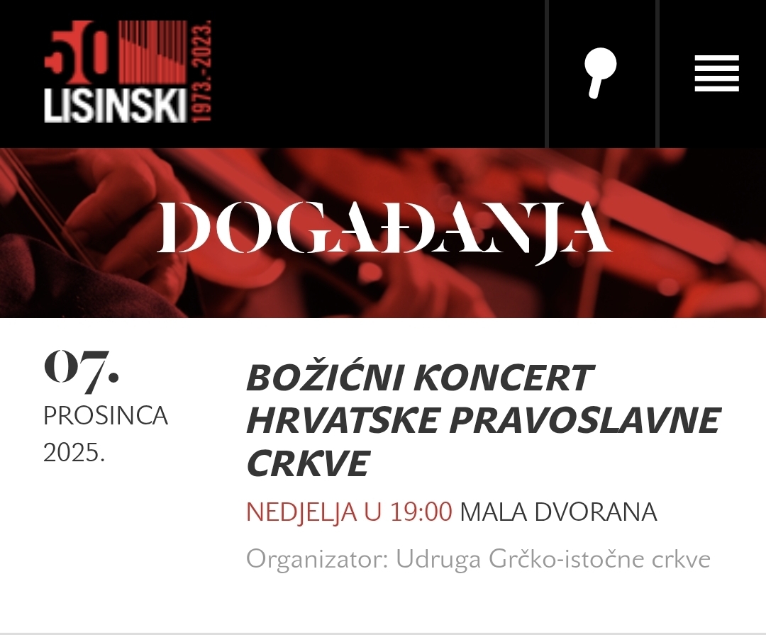 POZIV NA BOŽIČNI KONCERT HRVATSKE PRAVOSLAVNE CRKVE U DVORANI LISINSKI