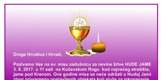Roman Leljak poziva ispred društva ‘ Huda jama’ na svetu misu