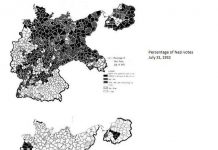 Dvije zanimljive karte Njemačke 1932 godine. Prvo, crna područja su one s najvišom koncentracijom katolika prema popisu stanovništva iz 1934. godine: