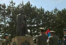 Izaslanici Vojske Srbije polažu vijenac na spomenik Draži Mihailoviću na Ravnoj Gori.