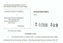 Danas je podignuta optužnica koja tereti ruske državljane Kostiantina Kalašnjiikova (31) i Elena Afanasjeva (27) za kršenje Zakona o registraciji stranih agenata (FARA) i...