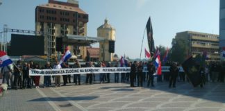 Srpski ekstremisti iz poznatog sela koljača provocirali prosvjednike 10 metarskom zastavom...