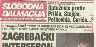Naslovnica Slobodne Dalmacije iz 2003. o „zagrebačkom interferonu koji spriječava SARS”