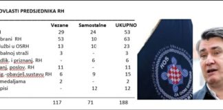 Od uklupno 188 ovlasti, predsjednik RH-e samostalno odlučuje...